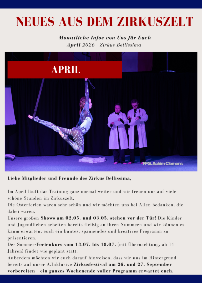 Willkommen auf der Seite des Kinder- und Jugendzirkus Bellissima in Speyer! Wir sind begeistert, dass Sie den Weg zu uns gefunden haben und laden Sie herzlich ein, sich über unseren Zirkus, unsere Projekte und Auftritte zu informieren. Viel Spaß beim Entdecken!