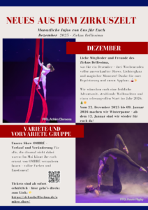 Meldet euch zu unserem Newsletter an und erfahrt monatlich was es neues unter dem Zirkuszelt gibt. Verfolgt unsere Geschichte weiter oder Meldet euch in unserem Zirkusverein an und werdet Teil der Geschichte rund um Bellissima.